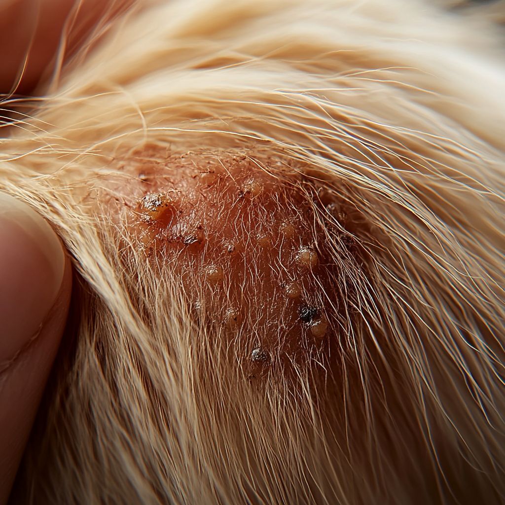 Piqûre de tique : Les piqûres de tiques sont souvent moins visibles, mais peuvent provoquer des rougeurs cutanées, des gonflements et des démangeaisons intenses. Elles s'attaquent principalement aux zones de peau douce, comme le ventre, les cuisses et les bras, et peuvent déclencher des réactions allergiques.