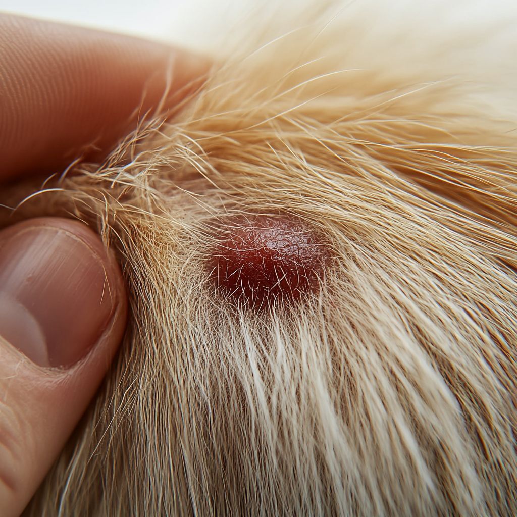Piqûre de tique : Les piqûres de tiques sont souvent moins visibles, mais peuvent provoquer des rougeurs cutanées, des gonflements et des démangeaisons intenses. Elles s'attaquent principalement aux zones de peau douce, comme le ventre, les cuisses et les bras, et peuvent déclencher des réactions allergiques.