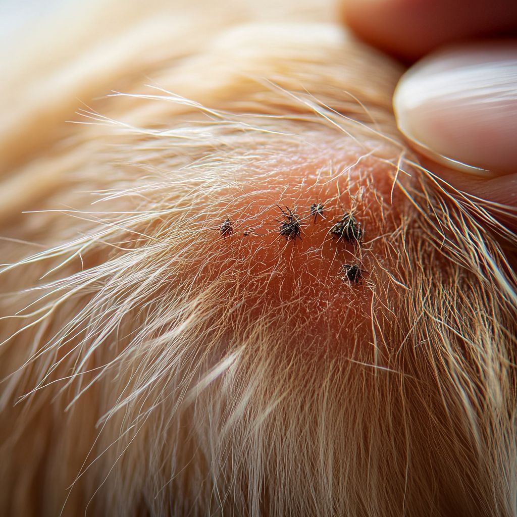 Piqûre de tique : Les piqûres de tiques sont souvent moins visibles, mais peuvent provoquer des rougeurs cutanées, des gonflements et des démangeaisons intenses. Elles s'attaquent principalement aux zones de peau douce, comme le ventre, les cuisses et les bras, et peuvent déclencher des réactions allergiques.