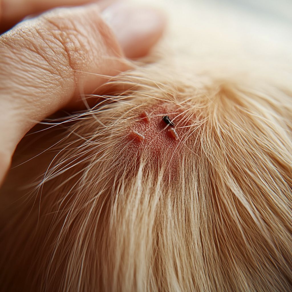 Piqûre de tique : Les piqûres de tiques sont souvent moins visibles, mais peuvent provoquer des rougeurs cutanées, des gonflements et des démangeaisons intenses. Elles s'attaquent principalement aux zones de peau douce, comme le ventre, les cuisses et les bras, et peuvent déclencher des réactions allergiques.