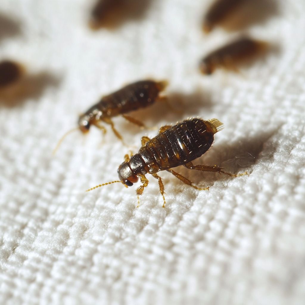 Les puces sont de petits insectes plats, de couleur brun foncé ou noire, capables de sauter rapidement. Les poux sont plus petits, de couleur plus claire, et s'accrochent souvent aux cheveux ou au cuir chevelu. Les deux insectes sont difficiles à repérer car ils se déplacent rapidement. Les démangeaisons sont un symptôme courant d'une infestation.