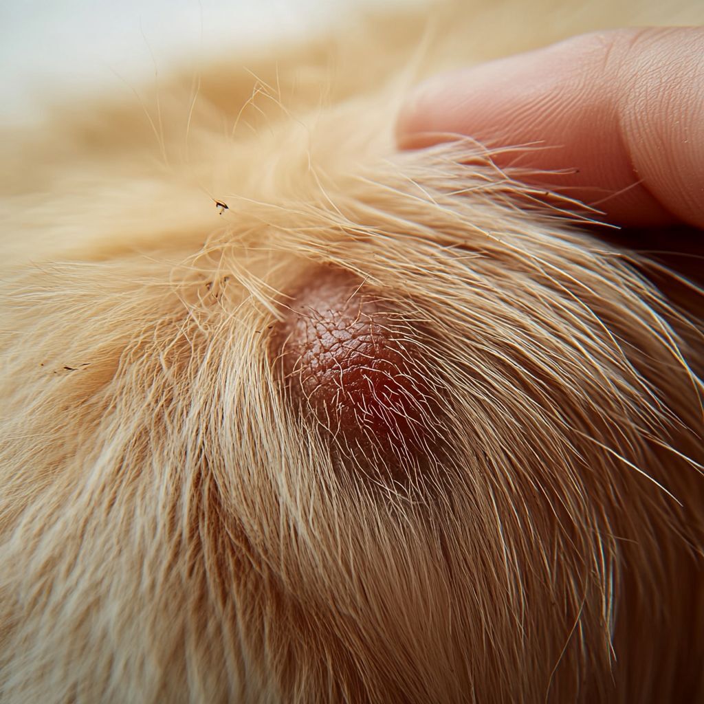 Piqûre de tique : Les piqûres de tiques sont souvent moins visibles, mais peuvent provoquer des rougeurs cutanées, des gonflements et des démangeaisons intenses. Elles s'attaquent principalement aux zones de peau douce, comme le ventre, les cuisses et les bras, et peuvent déclencher des réactions allergiques.