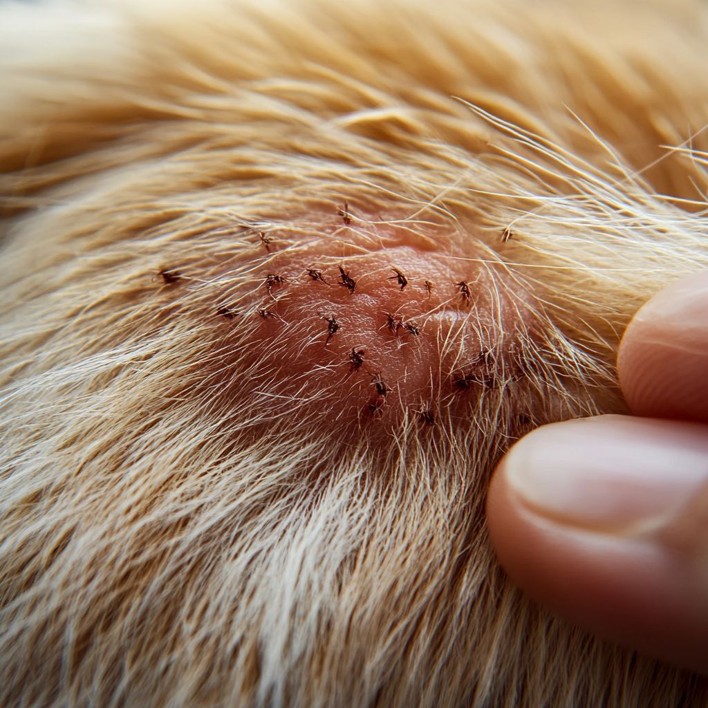 Piqûre de tique : Les piqûres de tiques sont souvent moins visibles, mais peuvent provoquer des rougeurs cutanées, des gonflements et des démangeaisons intenses. Elles s'attaquent principalement aux zones de peau douce, comme le ventre, les cuisses et les bras, et peuvent déclencher des réactions allergiques.