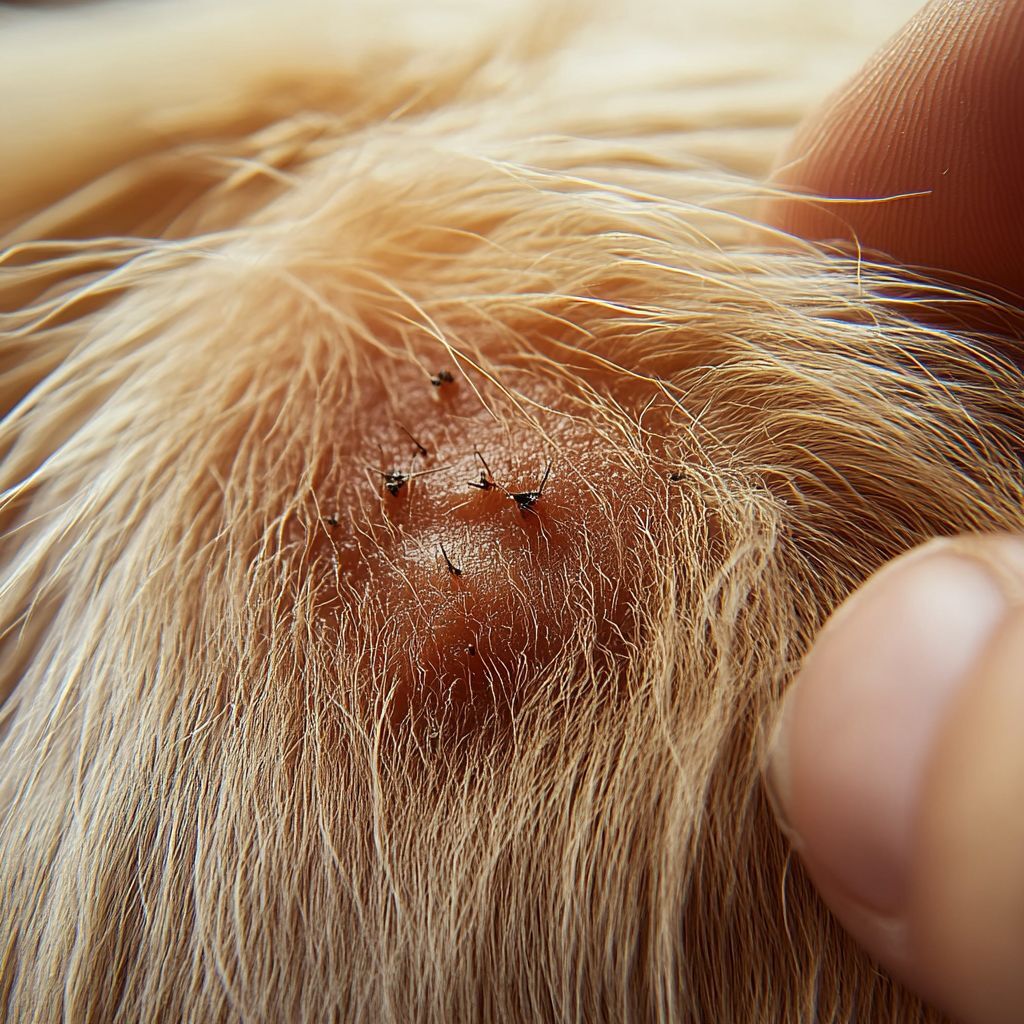 Piqûre de tique : Les piqûres de tiques sont souvent moins visibles, mais peuvent provoquer des rougeurs cutanées, des gonflements et des démangeaisons intenses. Elles s'attaquent principalement aux zones de peau douce, comme le ventre, les cuisses et les bras, et peuvent déclencher des réactions allergiques.