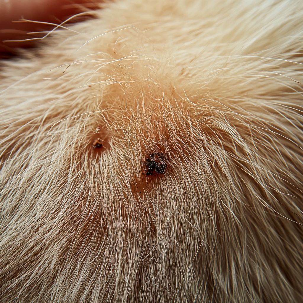 Piqûre de tique : Les piqûres de tiques sont souvent moins visibles, mais peuvent provoquer des rougeurs cutanées, des gonflements et des démangeaisons intenses. Elles s'attaquent principalement aux zones de peau douce, comme le ventre, les cuisses et les bras, et peuvent déclencher des réactions allergiques.