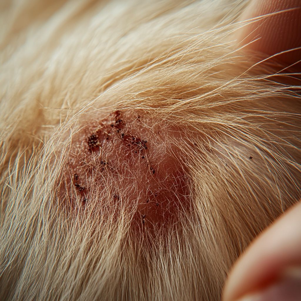 Piqûre de tique : Les piqûres de tiques sont souvent moins visibles, mais peuvent provoquer des rougeurs cutanées, des gonflements et des démangeaisons intenses. Elles s'attaquent principalement aux zones de peau douce, comme le ventre, les cuisses et les bras, et peuvent déclencher des réactions allergiques.