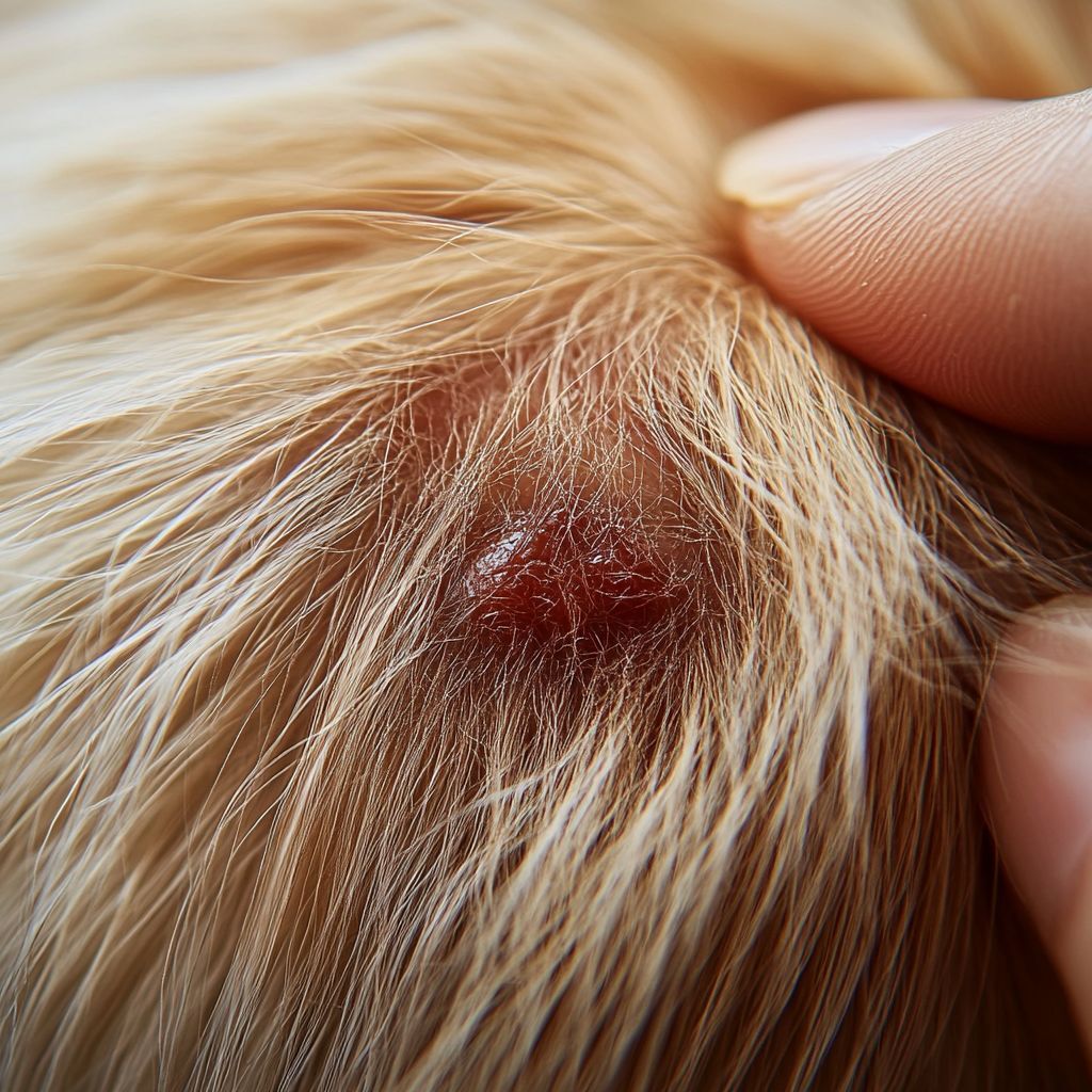 Piqûre de tique : Les piqûres de tiques sont souvent moins visibles, mais peuvent provoquer des rougeurs cutanées, des gonflements et des démangeaisons intenses. Elles s'attaquent principalement aux zones de peau douce, comme le ventre, les cuisses et les bras, et peuvent déclencher des réactions allergiques.