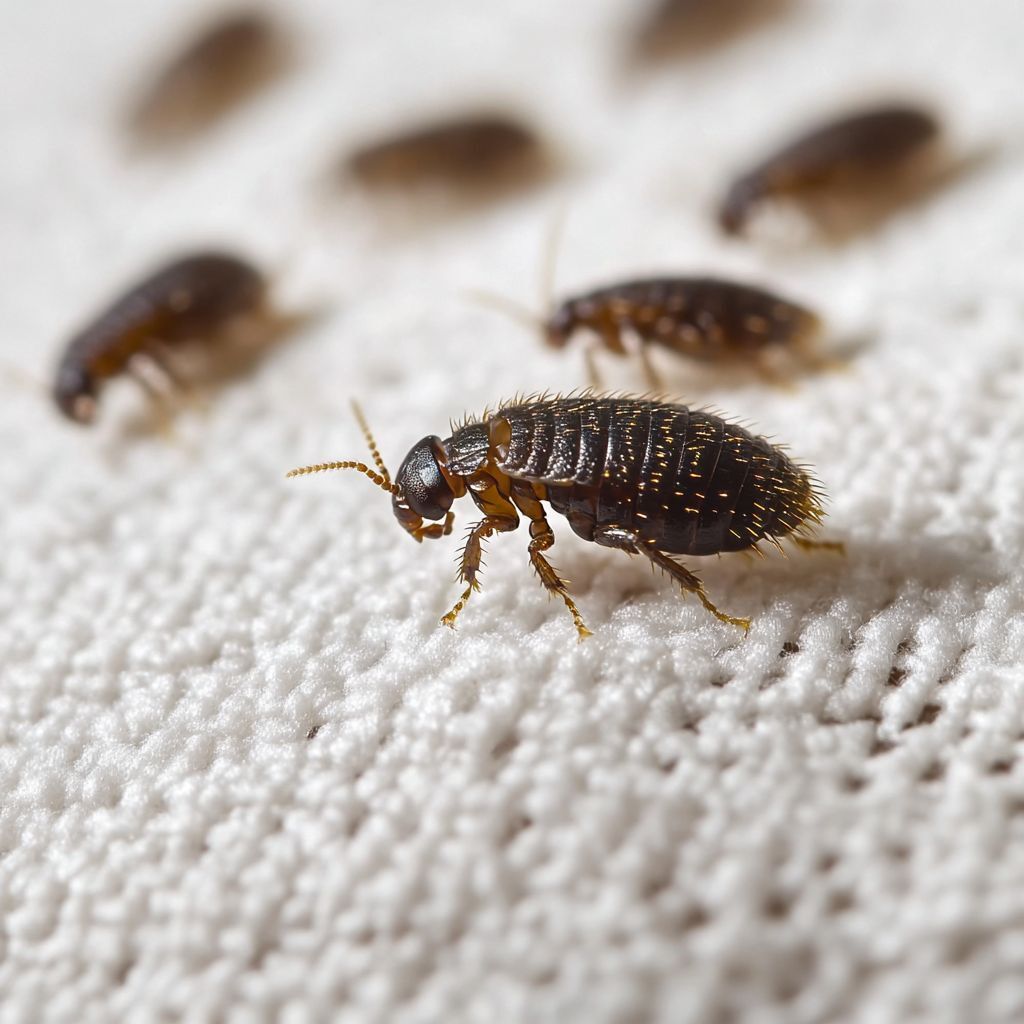 Les punaises sont plates et ovales, similaires aux puces, mais souvent plus grandes et avec une coloration différente. Alors que les puces sont noires ou brun foncé, les punaises peuvent apparaître rouges ou brunes. Les deux types ont des cycles de vie et des comportements différents, mais leur apparence peut être similaire. Il est important de les distinguer pour initier un traitement efficace.