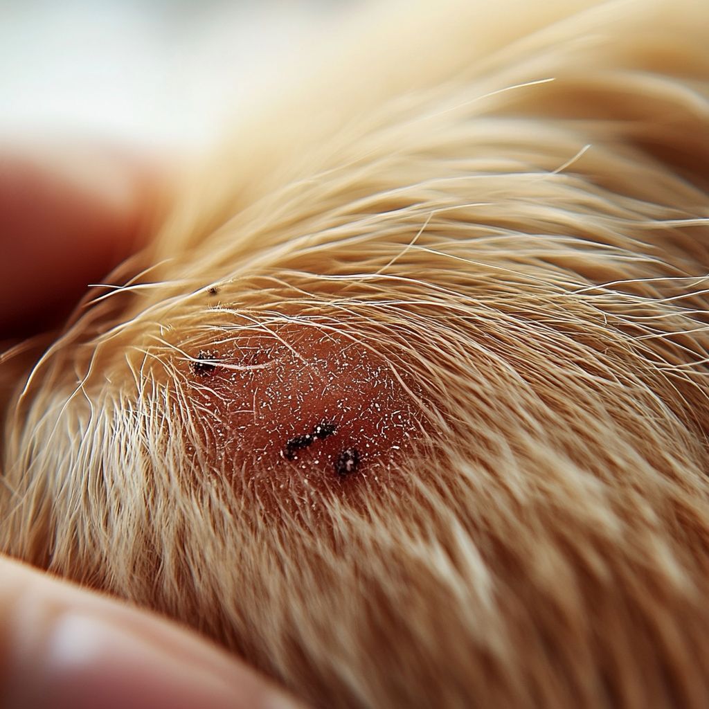 Piqûre de tique : Les piqûres de tiques sont souvent moins visibles, mais peuvent provoquer des rougeurs cutanées, des gonflements et des démangeaisons intenses. Elles s'attaquent principalement aux zones de peau douce, comme le ventre, les cuisses et les bras, et peuvent déclencher des réactions allergiques.